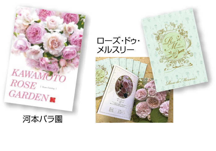 定番「河本バラ園」と毎年更新「ローズ・ドゥ・メルスリー」のカタログ2冊(550円相当)をプレゼント。オリジナル品種や海外ブランドのバラを美しい写真とともに紹介しています。
