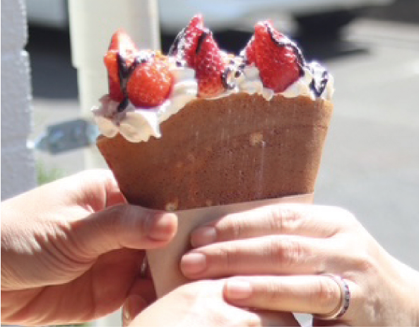 生地から手作りする「クレープ」(550円〜、14時以降限定)。お好きなもの1個を、店内でお召し上がりいただくかお持ち帰りいただけます。