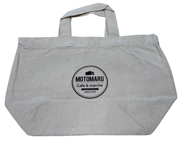 もとまるカフェ&マルシェのオリジナルランチバッグ(非売品、サイズ:高さ約200mm×幅約300mm×マチ約100mm)をプレゼント。